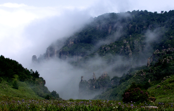 The secnery spot lies in a strategic place at rupture point of Yellow Plateau and Zhongzhou plain.As a typical eaks with the highest altitude of 1665m and the lowest altitude of 800m.At the top of the peak,you will be surprised at the majesty of Mt.Taihang and zhongyuan Plain.The area is almost covered by trees.The percentage has reached 96%.In summer,the tenperature ranges between 18oC-20OC.It is really a Cool Fairylland. The climates at the top and bottom of the mountain are totally are totally different.It is ideal place for your holiday all through the year.